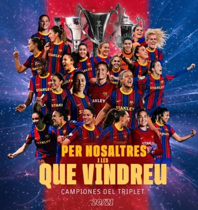 2020-21赛季,巴萨女足赢得了女子西甲冠军、女子欧冠冠军和皇后杯冠军,成为继里昂、沃尔夫斯堡、阿森纳和法兰克福之后欧洲第5支三冠王女足球队。