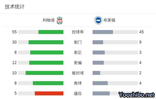 利物浦2-1布莱顿 萨拉赫制胜+失良机迪亚斯破门